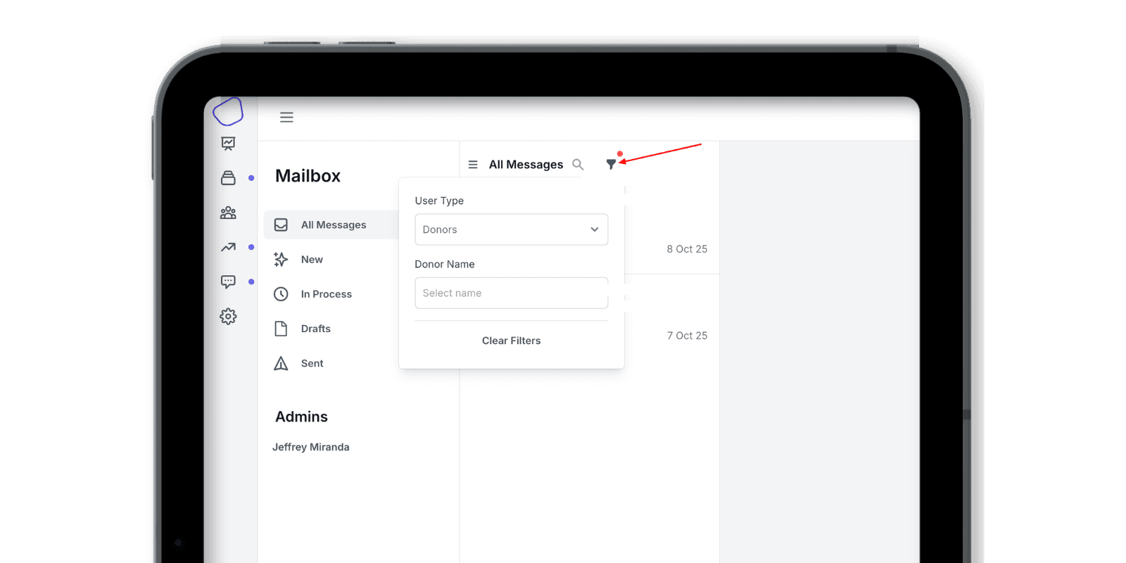 Instant access: Find specific messages quickly by searching or filtering by donor, recipient, or content.