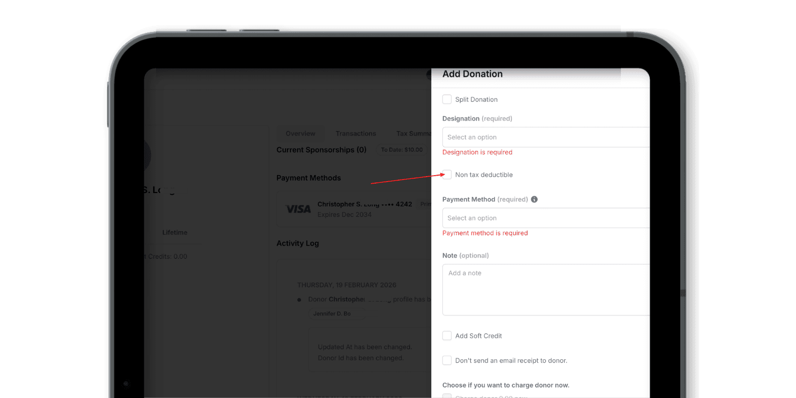 Tracking non-tax deductible donations just became easier. You can now specify which donations are non-tax deductible and ensure they’re accurately reflected in your statements. This helps you maintain transparency and compliance, all while focusing on your mission.