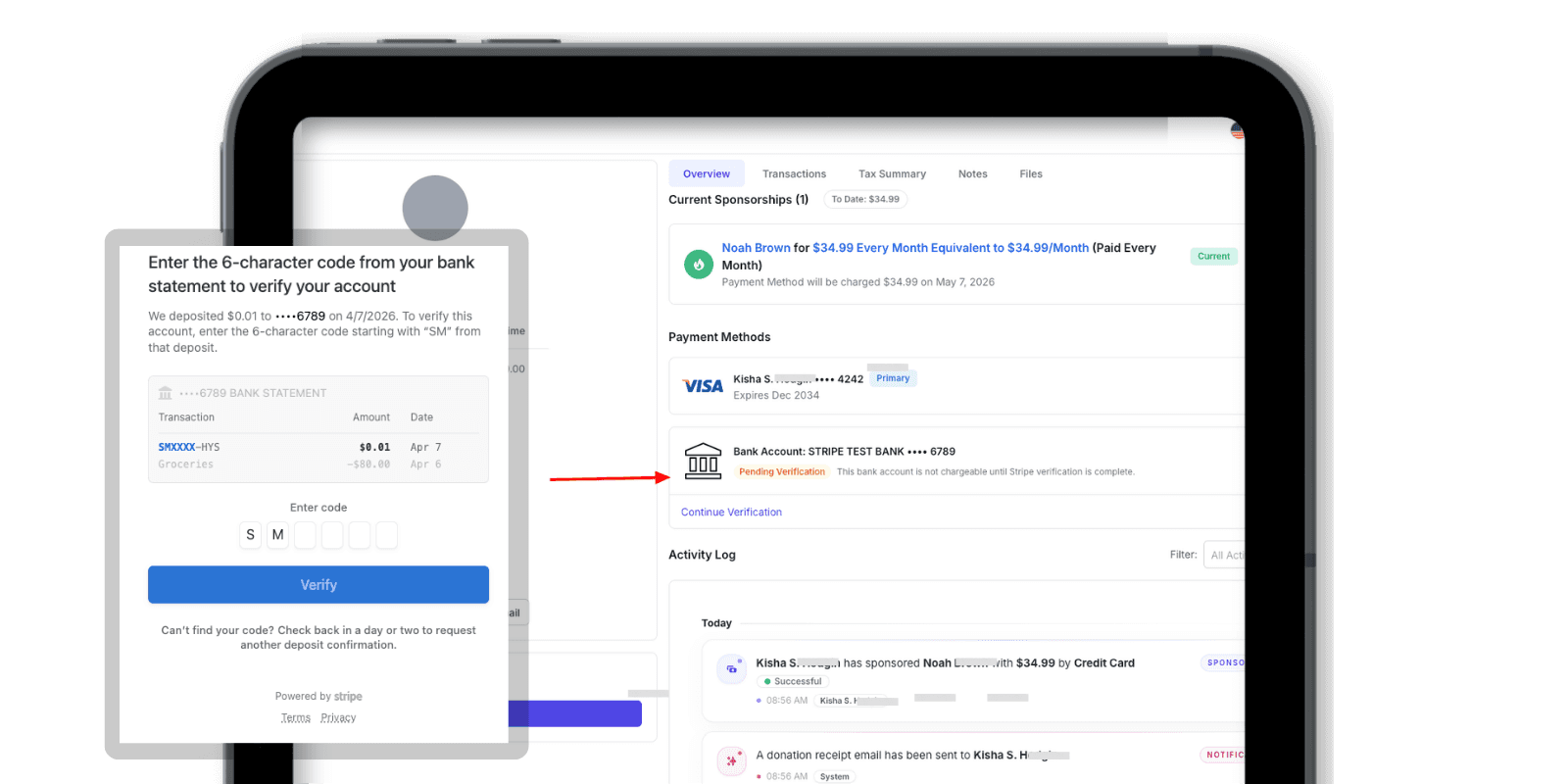 We now support micro-deposit verification for US bank accounts, allowing more donors to use ACH payments securely.
